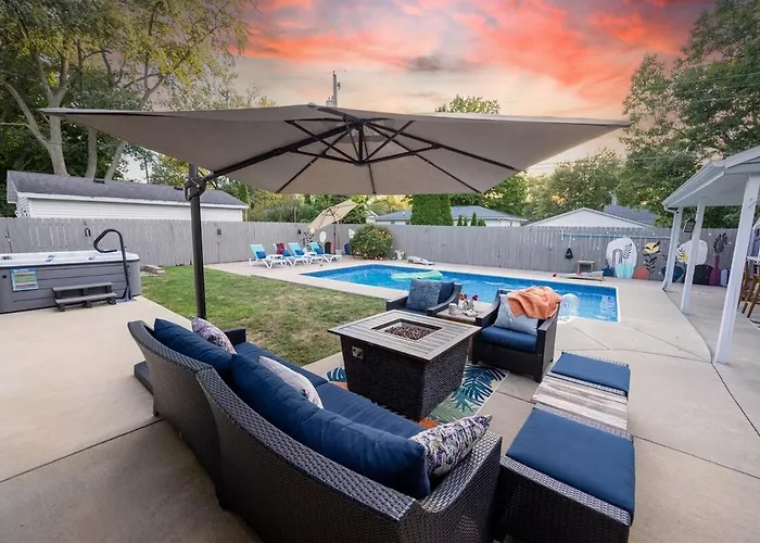 L'aeroporto Regionale di Central Illinois è raggiungibile in 20 minuti di auto, mentre attrazioni naturali come l'Hidden Creek Nature Sanctuary si trovano a 2 km. A circa 10 minuti in macchina da questa casa vacanze gli ospiti troveranno l'One Normal Plaza, mentre le Rader Family Farms è a 15 minuti in macchina. Le attrazioni educative a breve distanza dalla villa Central Location, Hot Tub, Digital Game Table includono Milner Library.